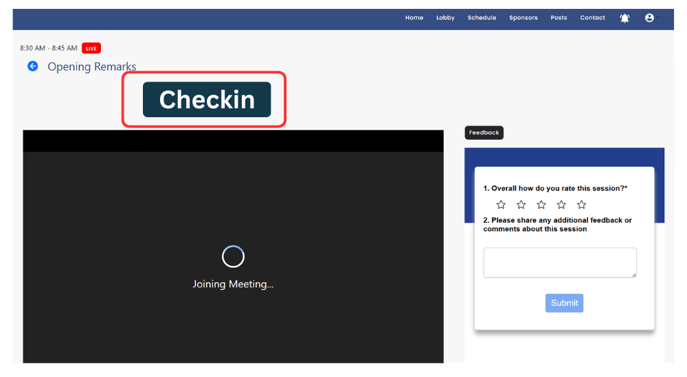 During each session, you will see an option to ‘Check In’ to confirm your attendance. You must check in at both the beginning and end of the session to receive the required educational credits.