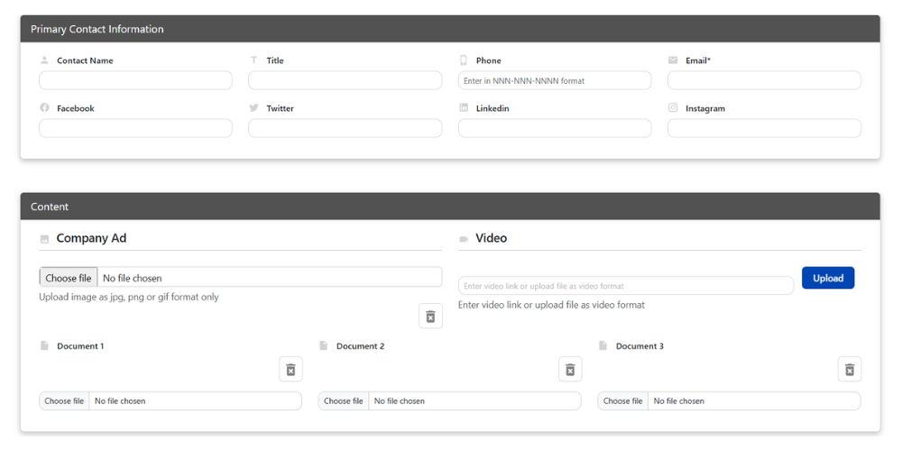 - You can upload upto three documents, preferably PDFs, to your company profile