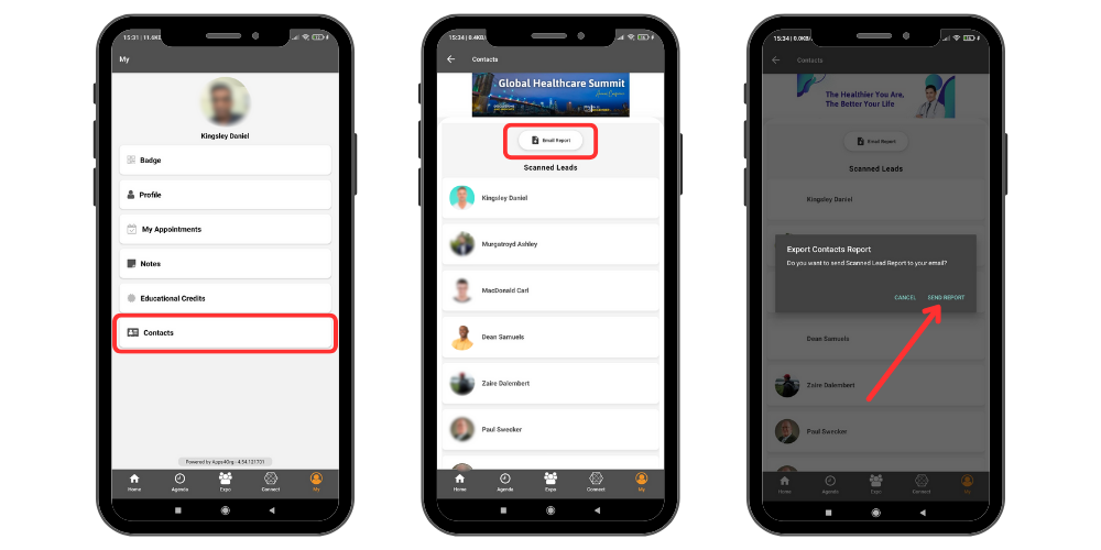 • To receive the leads report, select the Email Report icon and choose Send Report.